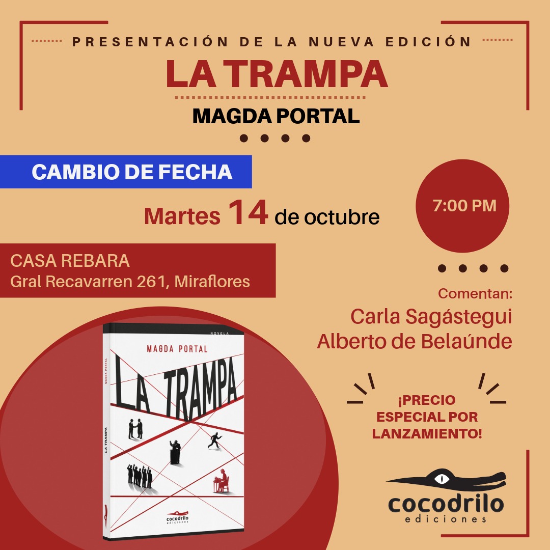 Novela "La trampa" de Magda Portal se presentará en la Casa Rebara esta misma noche a las 7:00 p.m.